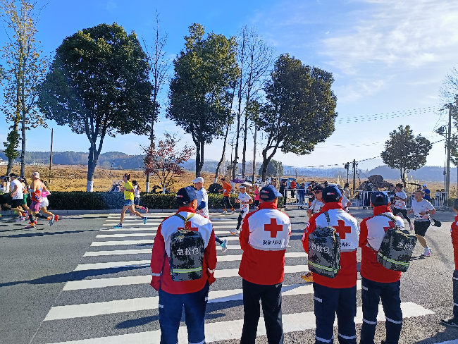 马拉松挑战自我极限,红十字救援守护生命线。此次赛事的应急救护保障,不仅赢得了参赛选手和观众的广泛赞誉,也为马拉松赛事的安全举办构筑了安全屏障。在这场速度与激情的盛宴中,红十字会救援队员们用专业和奉献,诠释了“生命至上”的理念,展现了“救”在身边的担当,践行了“人道、博爱、奉献”的红十字精神。未来,黄山区红十字救援队将继续强化救援措施,提升应急能力,为更多的体育赛事提供坚实的安全保障,让人们看到红十字力量在公共安全领域的重要作用。